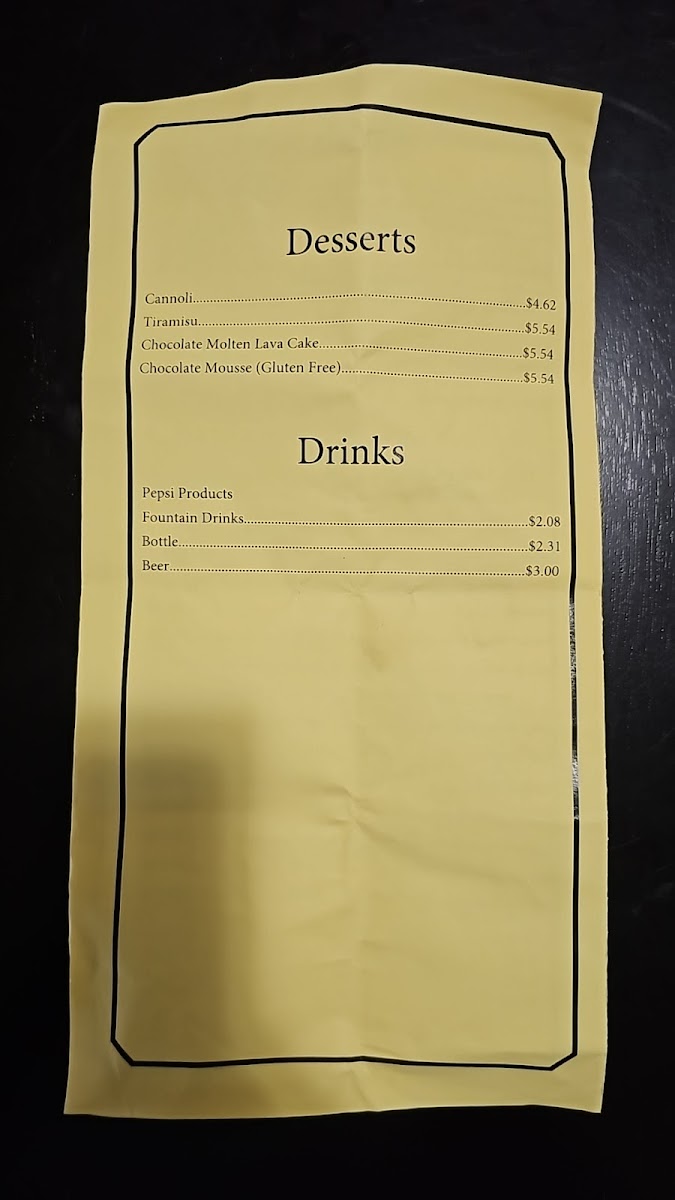 - Desserts: Indulge in sweet treats like Chocolate Molten Lava Cake and Tiramisu to complete your meal.